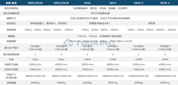 Ø 制袋規(guī)格多,可以適用 50ml-3000ml等多種規(guī)格的生產(chǎn),規(guī)格件少,更換十分簡便;